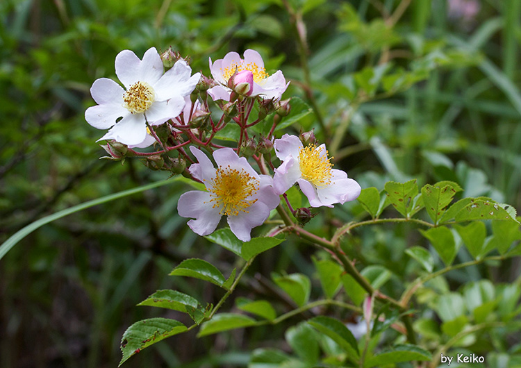 ![]() ’09.5.30撮影 錦江町(鹿児島県) 山地の林道に何故かバラが? 花の直径は4cm程、葉は艶があり、中央が赤い托葉と茎などの赤い腺毛が目立ちます。 ![]() ’09.5.30撮影 錦江町(鹿児島県) ![]() ’10.5.3撮影 福岡市東区 ![]() ’10.5.3撮影 福岡市東区 市街地の 河川敷に咲いています。 野生のものか園芸品なのか不明です。 ![]() ’01.6.17撮影 くじゅう(大分県) ![]() ’01.6.17撮影 くじゅう(大分県) 山地の原野にノイバラが群生していました。 その一角にほんのりピンクで大きなバラが目立ちます。 ツクシイバラ? 萼や花柄などに赤い腺毛が密生しています。 |
