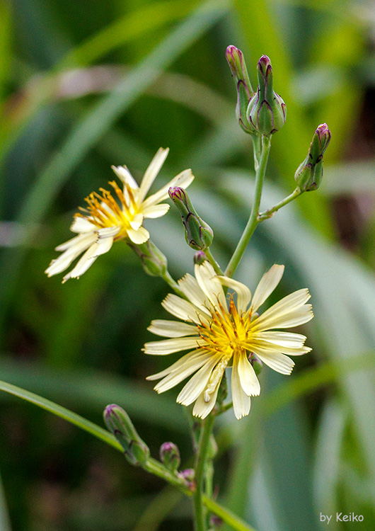 ![]() ’25.10.27撮影 平尾台(福岡県) コンパクトなアキノノゲシが秋風にゆれています。 同じ時期、湿地に咲くスイランは鮮やかな黄色の花を咲かせますが、 アキノノゲシは同じ黄色系統でも色褪せたような色。 花色は地味ですが、驚くほど大きくなって、目立っている個体もあります。 ![]() ’25.10.27撮影 平尾台(福岡県) 蕾は円柱形ですが、花が終わると下部がふくらみます。 ![]() ’25.10.27撮影 平尾台(福岡県) ![]() ’17.9.24撮影 志賀島(福岡県) ![]() ’17.9.24撮影 志賀島(福岡県) 花が咲くころになるとノッポになります。 ![]() ’19.10.6撮影 北松浦郡(長崎県) |