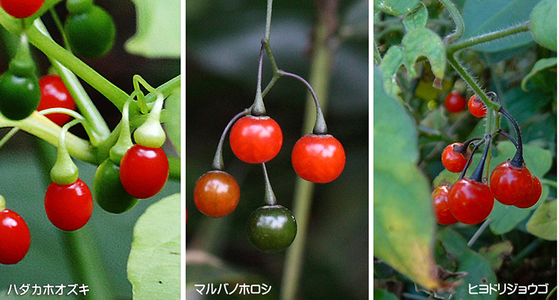 ![]() ’25.10.27撮影 平尾台(福岡県) 実だくさんのハダカホオズキ! 液果は球形ですが、まん丸ではなく、やや縦長です。 ![]() マルバノホロシかしらと近づくと、ハダカホオズキでした。 ハダカホオズキは萼の先が平らで分裂していません。 ![]() ’21.11.28撮影 肝属郡(鹿児島県) ![]() ’15.9.13撮影 福智山(福岡県) 果実が萼に覆われないので、ハダカホオズキになったそうです。 果実は液果で、熟すと赤くなります。 他に山地でみかける仲間にヤマホオズキ、イガホオズキは萼が大きくなって液果を包みます。 ![]() ’04.9.5撮影 福智山(福岡県) ![]() ’04.9.5撮影 福智山(福岡県) ![]() ’12.9.4撮影 三郡山(福岡県) ![]() ’02.9.29撮影 加江田(宮崎県) ![]() ’02.9.29撮影 加江田(宮崎県) ホオズキの仲間は下向きに垂れ下がって花をつけているので、 気がつかないことが多いです。 パールの光沢のやわらかい黄色の花が くるりと反っくり返るところが可愛らしいです。 |