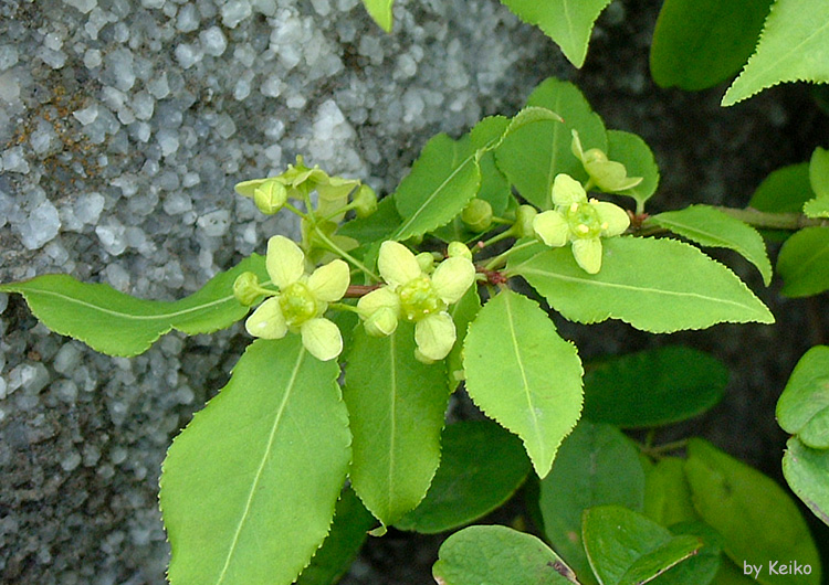ニシキギ(錦木)/ ニシキギ科 ニシキギ属 落葉低木 / 5~6月 / 北、本、四、九 |