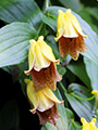 高知県に自生。花は黄色い釣鐘型で、長さ 4cm ほど、下向きに開く。茎の基部は浅心形で、片側に耳片があって茎を抱く。 |