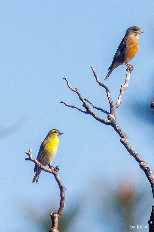 マヒワとカワラヒワの混群でしたが、あっという間に飛んでいきました。