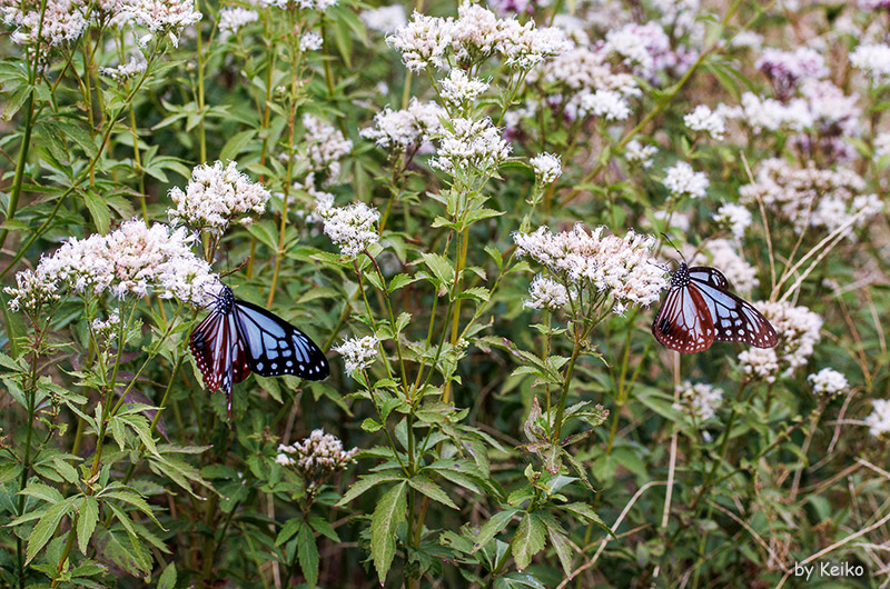 フジバカマ、サワフジバカマ吸蜜するアサギマダラ