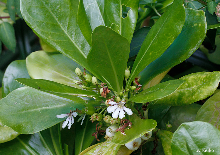 ![]() 花期も終盤、果実をつけていました。 ↓熟すと真っ白になるようです。 ![]() ’25.10.2撮影 奄美大島(鹿児島県) ![]() ’03.12.6撮影 佐敷町(沖縄県) ハマジンチョウの横にはクサトベラが咲いていました。 属名のラテン語は「左利き」という意味だそうです。 左手を広げたように見えますでしょうか。 ![]() ’03.12.6撮影 佐敷町(沖縄県) トベラの葉と似ていますが、軟らかいので、クサトベラという名前になったのかもしれませんね。 ![]() ’06.9.8撮影 西表島(沖縄県) ![]() ’06.9.8撮影 西表島(沖縄県) 扇状の花も個性的ですが、要のところから直立して伸びている雌しべがユニークです。 |