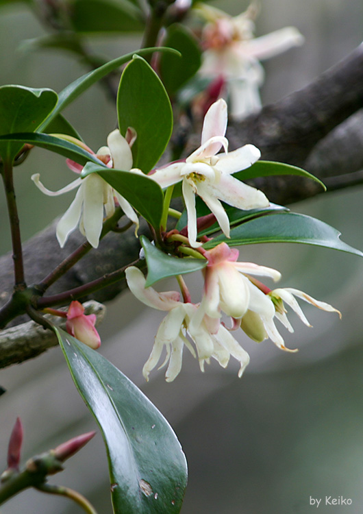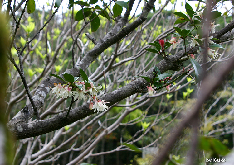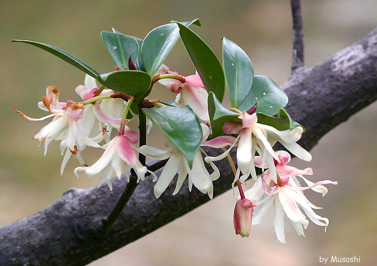 花が淡紅色を帯びるものがあり、ウスベニシキミ(f. roseum)という。