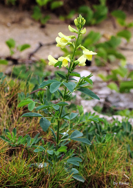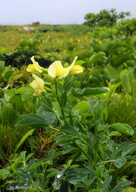 ![]() ’05.3.6撮影 沖縄本島 ![]() ’05.3.6撮影 沖縄本島 ![]() ’05.3.6撮影 沖縄本島 クサトベラやアダンの近くに謎のマメ科発見! 遠くから黄色い花が見えたときはキケマンかなと思ったのですが、 少し近づくとマメ科の花なのです。 黄色のマメ科は?? 北海道で見たセンダイハギ、帰化植物のシナガワハギ、高山植物のイワオウギ、 キバナルピナス、 エニシダの仲間? いろいろ思い浮かべるのですが、近しいものがありません。 調べてみるとコガネタヌキマメの仲間で、アメリカタヌキマメとアフリカタヌキマメがありました。 アメリカタヌキマメ?でアップしたところ、Nさんよりメールをいただき、 この個体はアメリカタヌキマメではなく、クソエンドウだということがわかりました。m(_ _)m それにしても気の毒な名前です。。 ![]() ’17.3.1撮影 糸満市(沖縄県) ![]() ’17.3.1撮影 糸満市(沖縄県) |