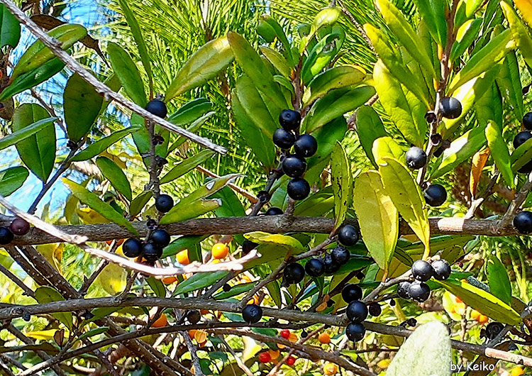 ![]() ’18.11.13撮影 福岡市東区 鳥見中、臭気が? この匂いはハマヒサカキ。 近づくと、花盛りでした。 花も果実もヒサカキによく似ていますが、葉の先が丸く、葉の主脈がへこんでいます。 花の臭いはヒサカキ同様、都市ガスの臭いがします。 ![]() 雄花 ’01.12.2撮影 指宿市(鹿児島県) ![]() 雄花 ’02.12.13撮影 福岡市東区 ↑雄しべがたくさんあるので、雄花です。 ↓雌花は雄花より小さく、雄しべが退化しているそうです。 ![]() 雌花 ’18.12.1撮影 長崎市 ![]() 雌花 ’18.12.1撮影 長崎市 ![]() ’26.1.14撮影 西戸崎(福岡県) 直径5mmくらいの黒くまん丸の果実をつけていました。