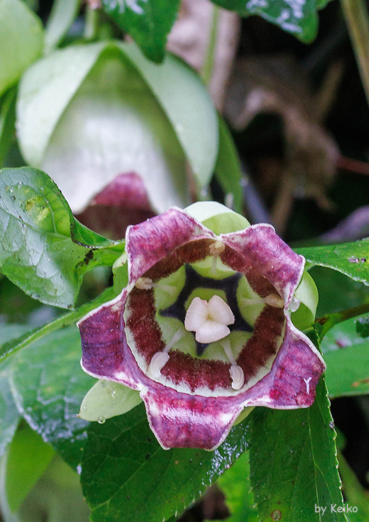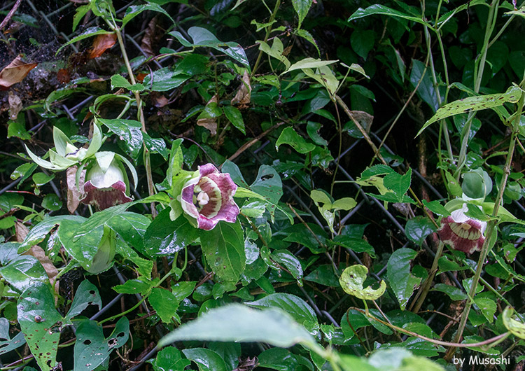 ![]() ’25.9.12撮影 阿蘇市(熊本県) 落石防止の金網が続く一帯はツルニンジンの楽園、大きな蕾をたくさんつけています。 開花した花はまだ僅かでしたが、花盛りの頃は賑やかなことでしょう。 ![]() ’25.9.12撮影 阿蘇市(熊本県) ![]() ’25.9.12撮影 阿蘇市(熊本県) ![]() ’05.9.10撮影 阿蘇市(熊本県) ![]() ’10.9.29撮影 阿蘇市(熊本県) ツルニンジンという和名より、別名のジイソブという名前に親しみを感じます。 よく似たものにバアソブというのがあってその男性版というわけですが、 「ソブ」というのは長野地方の方言でそばかすのこと。 つまり「爺さんのそばかす」です。 バアソブに比べ葉も蕾も花も大きく、花の外側が白っぽいです。 ![]() ’03.9.20撮影 九重町(大分県) 爺さんのそばかす「 ジイソブ」というネーミングが気に入っています。 バアソブより少し大きいジイソブは少し遅れて咲き始めます。 |