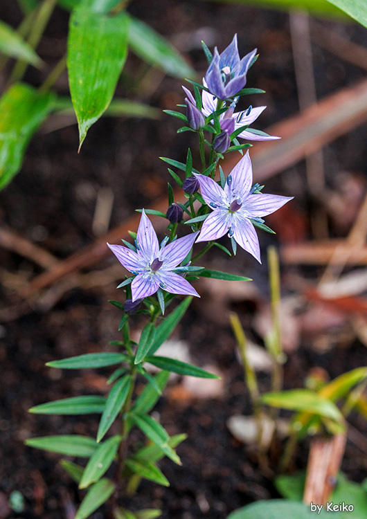 ムラサキセンブリ : 山野。葉は線形。花は淡紫色。茎は暗紫色。西日本に多い。全草苦い。 |
