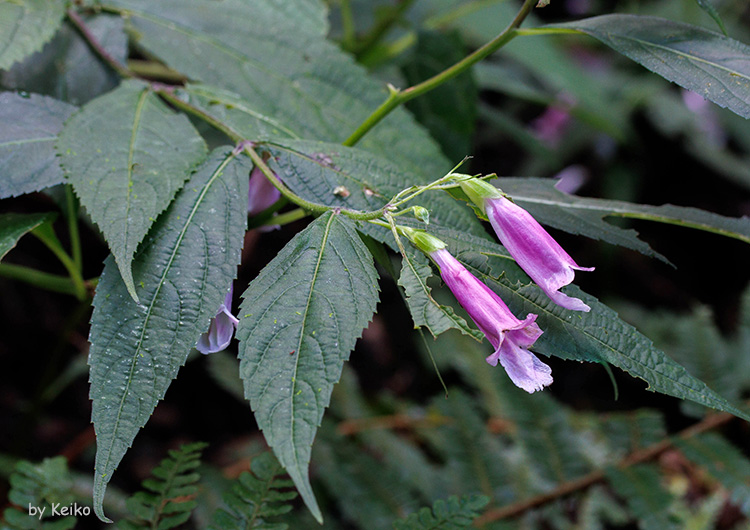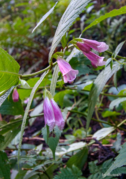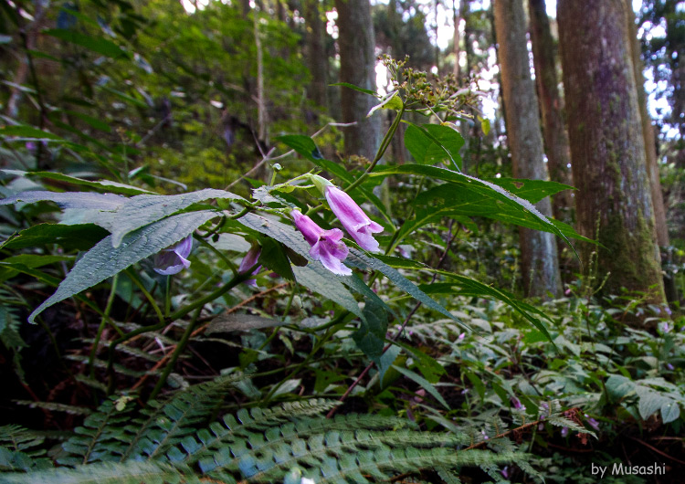 山地の谷間。草丈50~100cm。ジャコウソウに似るが花冠はやや小さく、長さ3.5~4cm。花柄の長さが3~4cmと長いのが特徴。茎は基部から直立して斜上し、粗い毛があり、普通赤紫色を帯びる。葉は対生し、短柄があり、広披針形~長楕円形で、長さ8~15cm、幅2.5~5cm。先は尖り、基部は耳状心形。両面、特に脈上に斜上する毛がある。花は葉腋から出た3~4cmの長い花柄の先に1~3個、唇形花をつける。花冠は太い筒状、紅紫色で長さ3.5~4cm。萼は圧毛があり、花時で長さ7~8mm、花後は球状の鐘形となる。果実(分果)は長さ約1cm。和名は葉をゆすると麝香の香りがすることから。