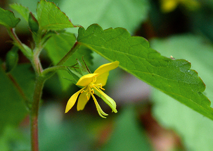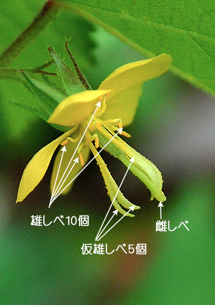 道ばたや畑など。種子をカラスが食べるゴマに喩えた。茎は丸くて直立し、高さ30〜60cm。茎葉に星状毛がある。葉は互生し、卵形で先はややとがり、基部は円形または切形、長さ2〜7cm、幅2〜4cm、鈍鋸歯があり、柄は長さ1〜2cm。葉腋に1個の黄色の花がつく。花柄は長さ1.5〜3cm、萼片は線状披針形で長さ6〜8mm。先はとがり、反曲し、外面に星状毛がある。花弁は倒卵形、長さ7〜10mm。仮雄蕊は長さ7〜9mm。子房は3室。さく果は長さ2.5〜3.5mm、幅約3mmで少し湾曲し、星状毛がある。種子は卵形で長さ3mm以下、横に隆起線がある。